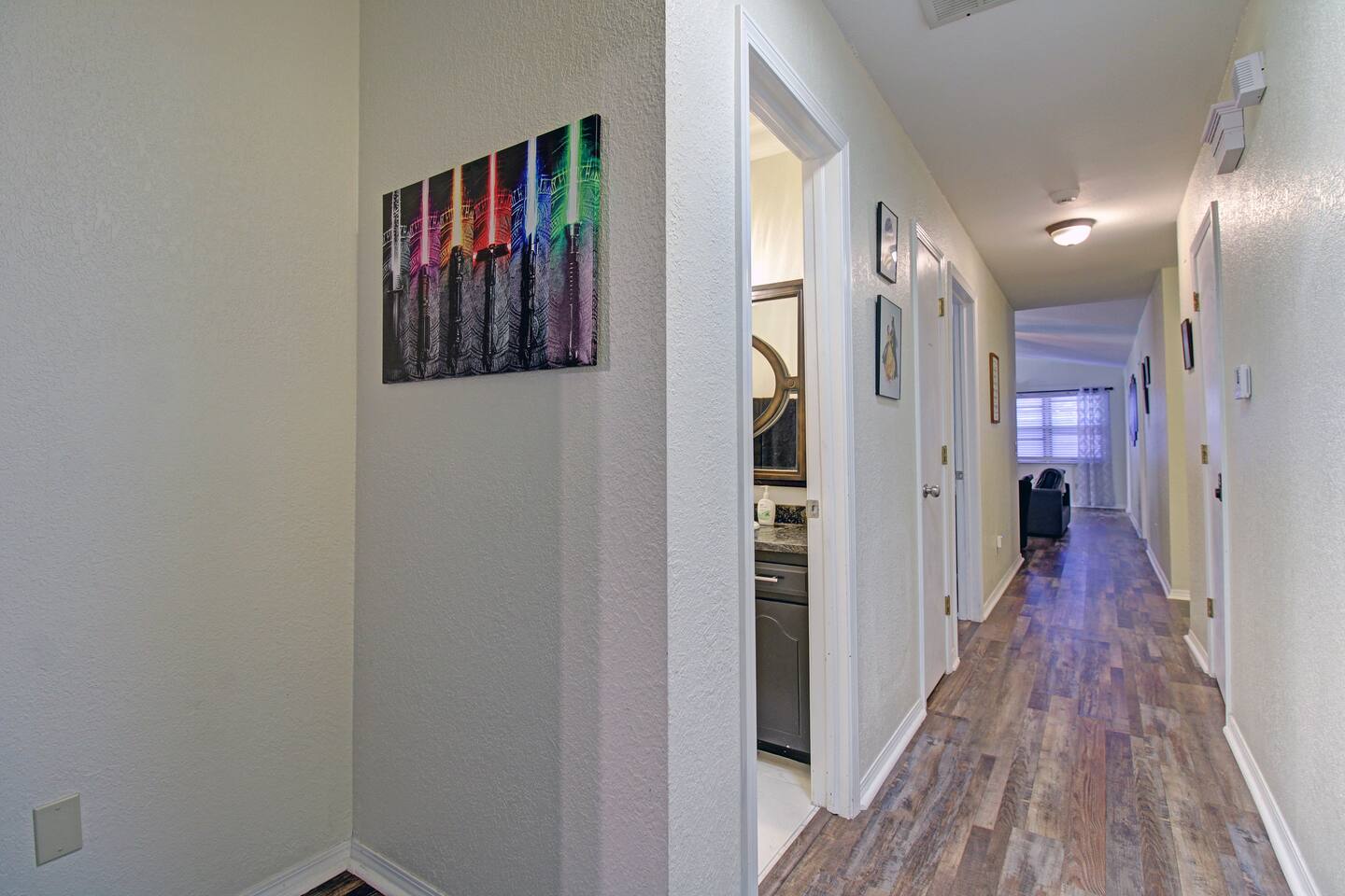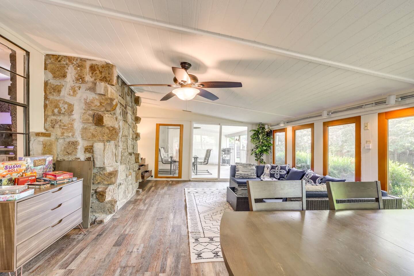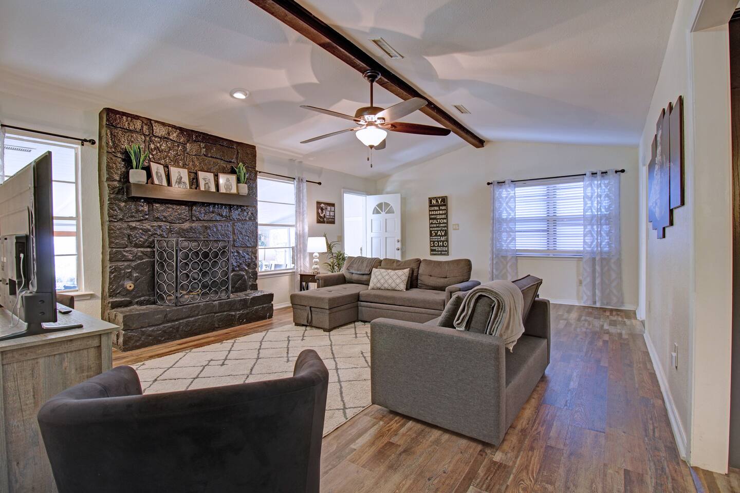Security: For your safety and the security of the property, there are 4 exterior security cameras facing outward and a Ring Doorbell at the front entrance. These devices record video and audio when motion is detected. An indoor noise monitoring device is also present; it measures decibel levels to ensure compliance with noise policies but does not record conversations. Accessibility: The home features step-free entry. However, please be aware that there are interior steps required to access Bedroom 3 and the sunroom. Fireplace & Fire Pit: The indoor fireplace is decorative and not available for guest use. You are welcome to use the outdoor fire pit in the backyard.
